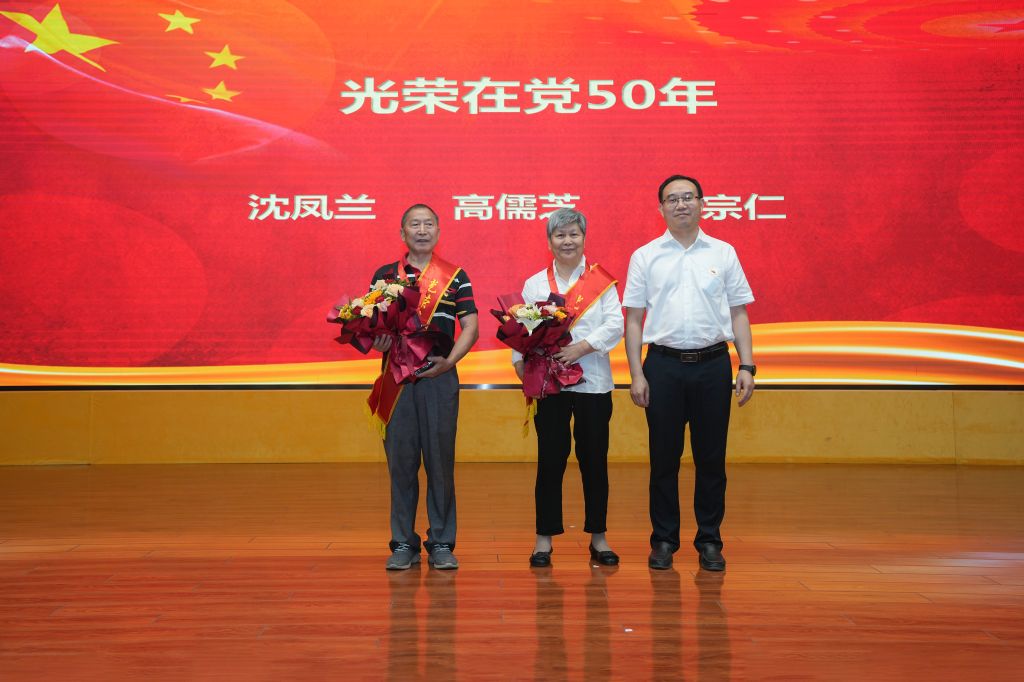 党委副书记、副院长王云甫为沈凤兰、高儒芝、石宗仁3名老党员颁发“光荣在党50年”纪念章。