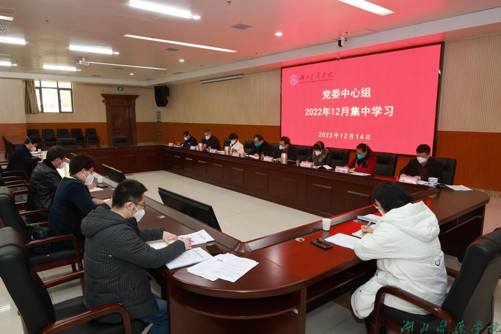 会上,涂汉军导学习近平总书记在2022年第23期《求是》杂志上发表的重要文章《在党的十九届七中全会第二次全体会议上的讲话》;党委副书记、校长王云甫导学中共中央政治局10月25日、12月6日会议精神;党委常委、副校长李云霞导学《习近平谈治国理政》第四卷第十四专题“坚持人与自然和谐共生”以及《习近平生态文明思想学习纲要》;党委常委、副校长严世荣导学《习近平谈治国理政》第四卷第十六专题“统筹发展和安全”及习近平总书记向2022年世界互联网大会乌镇峰会致贺信的精神;党委常委、副校长罗杰导学《习近平谈治国理政》第四卷第十八专题“弘扬全人类共同价值,推动构建人类命运共同体”以及防疫政策“新十条”;党委常委、统战部长谭艳导学《习近平谈治国理政》第四卷第十七专题“坚持‘一国两制’和推进祖国统一”以及习近平总书记在12月2日党外人士座谈会上的重要讲话精神;党委常委、组织部长张海蛟导学《习近平谈治国理政》第四卷第二十一专题“以伟大自我革命引领伟大社会革命”以及习近平总书记对河南安阳市凯信达商贸有限公司火灾事故作出的重要指示精神。