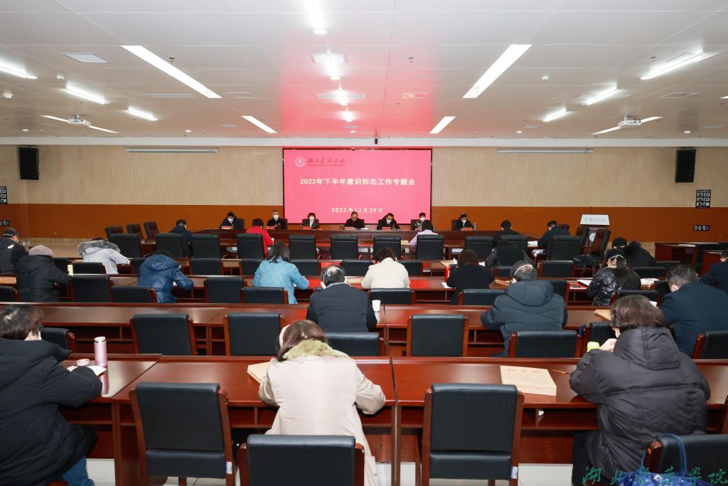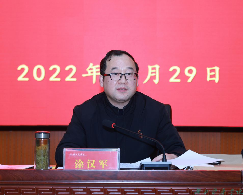 本网讯(文/陈旭 图/鲍晓宇)12月29日下午,2022年下半年意识形态工作专题会暨2022年第四季度意识形态工作联席会在科教楼一楼多功能报告厅举行。全体校领导、联席会议成员单位负责人出席会议。各分党委书记、部门负责人列席会议,党委书记涂汉军主持并讲话。