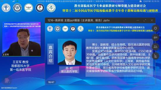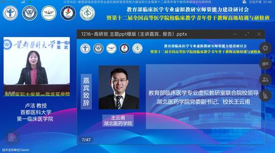本网讯(通讯员 代亚君)为深入贯彻党的二十大精神,落实《关于加快医学教育创新发展的指导意见》精神,推进临床医学专业虚拟教研室建设,加强各虚拟教研室全体成员单位骨干教师之间的交流及经验分享,实现共同发展,2022年12月16-17日,由首都医科大学主办,内蒙古医科大学、陆军特色医学中心、湖北医药学院协办的“教育部临床医学专业虚拟教研室师资能力建设研讨会暨第十二届全国高等医学院校临床教学青年骨干教师高级培训与研修班”在线上举行。