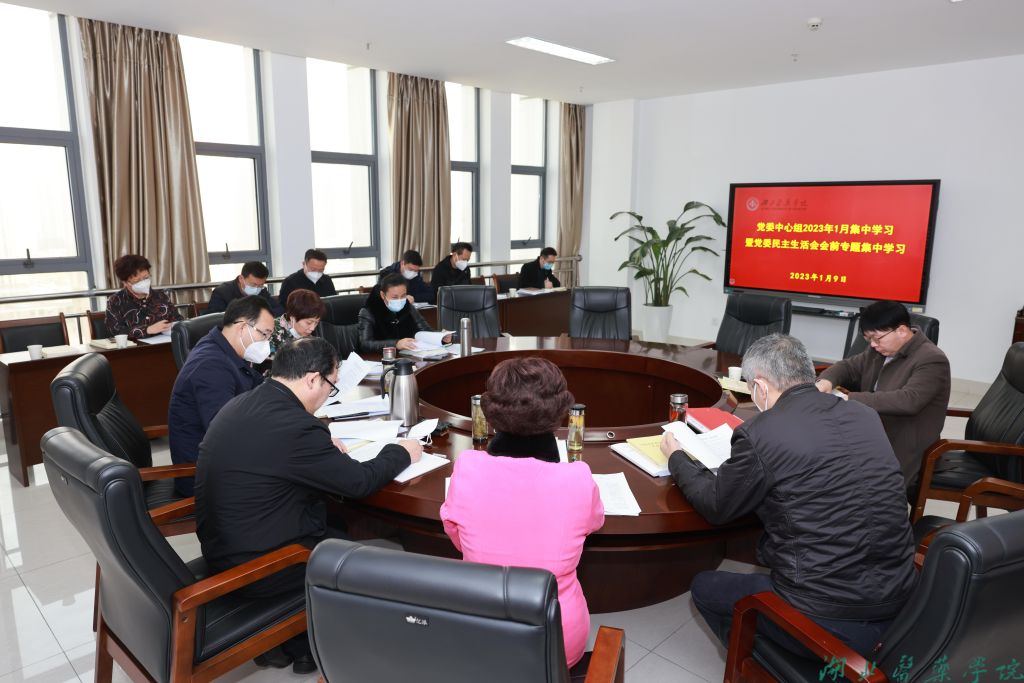 本网讯(文/陈旭 图/鲍晓宇)1月9日下午,校党委理论学习中心组在1707会议室举行2023年第1次集中学习暨党委民主生活会会前专题集中学习。校党委中心组成员、纪委副书记、党委工作部门负责人参会。校党委书记涂汉军主持学习活动并作总结讲话。