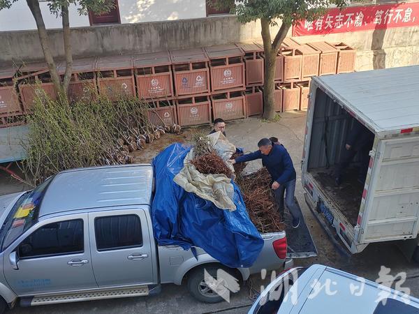 湖北日报客户端讯(通讯员 文/李俊敏 付勇 图/钱江)阳春三月到,村民植树忙。第45个植树节前后,湖北省竹溪县县河村山间地头一派繁忙景象,湖北医药学院药护学院援助的1600棵爱心李树苗正免费分发到村民手中。看着手上一捆一捆树苗,村民们脸上露出开心的笑容。为了抢抓时令,在驻村工作队和村两委干部的带领下,30多名村民爬上山头、走入田间测距、挖坑、埋苗、培土、压实、灌浇定根水……为美丽乡村又添上了一抹浓浓的绿色。
