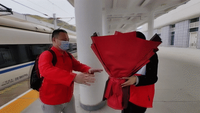 3月28日下午,随着列车缓缓进站,刚刚在武汉成功捐献造血干细胞的小寒,受到了十堰市红十字会工作人员的热烈欢迎。