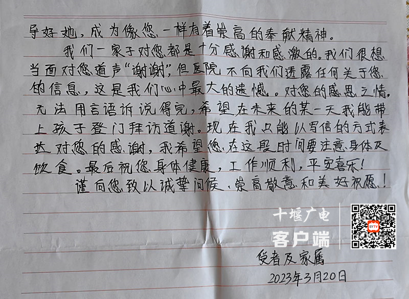 在送出这份“生命礼物”的同时,小寒也收到了一封“以生命之名”的回信。