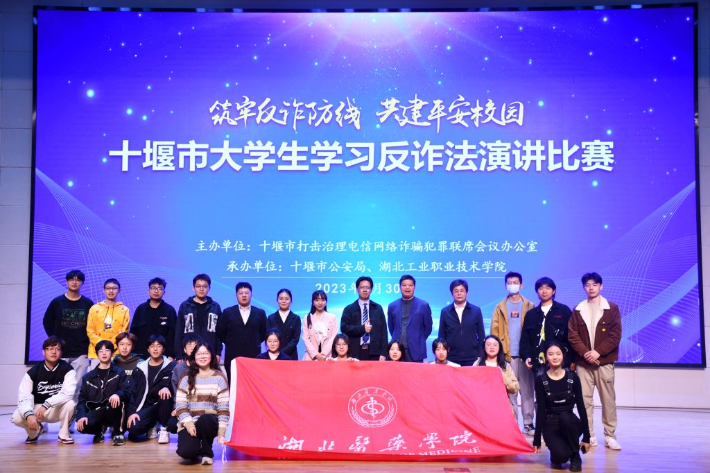 本次大赛由十堰市五所高校参与,12名选手在决赛展开角逐。我校参赛选手以贴合青年大学生学习与生活小故事为切入点,为大家讲述常见电信诈骗类型、防范电信网络诈骗的方法等内容,展现出较丰富的反诈知识储备和较高的演讲水平。