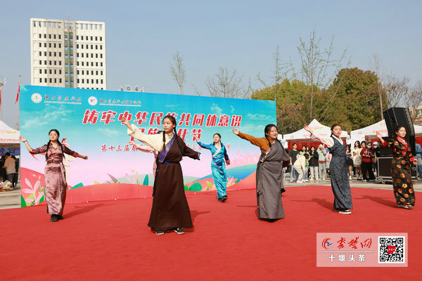 秦楚网-十堰头条讯文、图/记者 刘成臣 通讯员 曲晴 钟诺雨 报道:4月1日,湖北医药学院铸牢中华民族共同体意识民族文化节、第十三届春蕾社团文化节暨书院文化节在校图书馆前广场上举行,该校师生代表近千余人参加了活动。