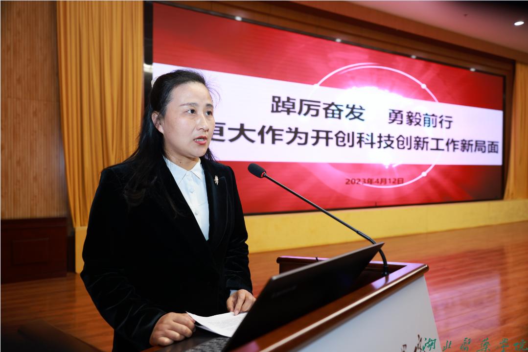 校党委常委、统战部部长谭艳代表学校作了《踔厉奋发 勇毅前行 以更大作为开创科技创新工作新局面》的科技工作报告。她指出,2022年是我校实施“十四五”规划的重要之年,学校科技工作紧紧围绕“建设高水平有特色医药大学”的总体目标,对照目标任务,落实主体责任,较好地完成了学校确定的各项任务。一是着力加强科技管理创新,科研成果产出大幅增加;二是着力夯实创新平台建设,平台支撑效能显著提升;三是着力推动产学研用融合,成果转化效益明显增强;四是着力搭建学术交流舞台,聚焦当代科技发展前沿;五是着力打造学术特色品牌,学报办刊质量持续提升;六是着力加强科学道德建设,学术生态环境持续改善。她强调,2023年是实施“十四五”规划承前启后的关键之年。根据2022年科技工作目标完成情况,结合科技创新工作、新要求,我们将秉持“引领创新、聚焦前沿、支撑发展、追求卓越”的发展理念,深入实施创新驱动发展战略,加快建设卓越的创新生态系统,提升原始创新能力,推动科技创新工作持续高质量发展。主要做好五方面工作:一是提升精细管理水平,促进项目量质齐升,二是强化科研平台建设,夯实平台支撑能力;三是完善转化服务体系,增强成果转化力度;四是聚焦科技发展前沿,繁荣活跃学术交流;五是推进科研诚信建设,营造绿色科研生态。