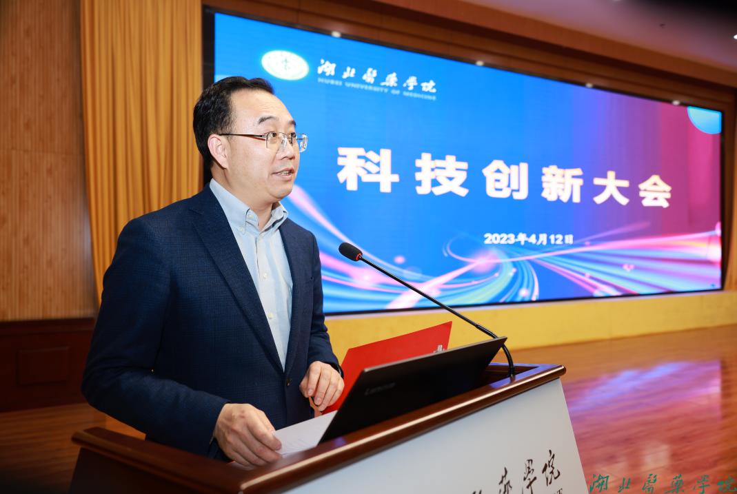 本网讯(文/马俊凯 赵永全 图/鲍晓宇 黄松鹤)4月12日下午,湖北医药学院2023年科技创新大会在科教楼一楼学术报告厅举行。全体校领导出席会议,附属医院领导、机关全体管理干部、全校教师、研究生导师、先进单位和个人代表、各二级学院及附属医院领导及科研管理人员、研究生等500余人参会。