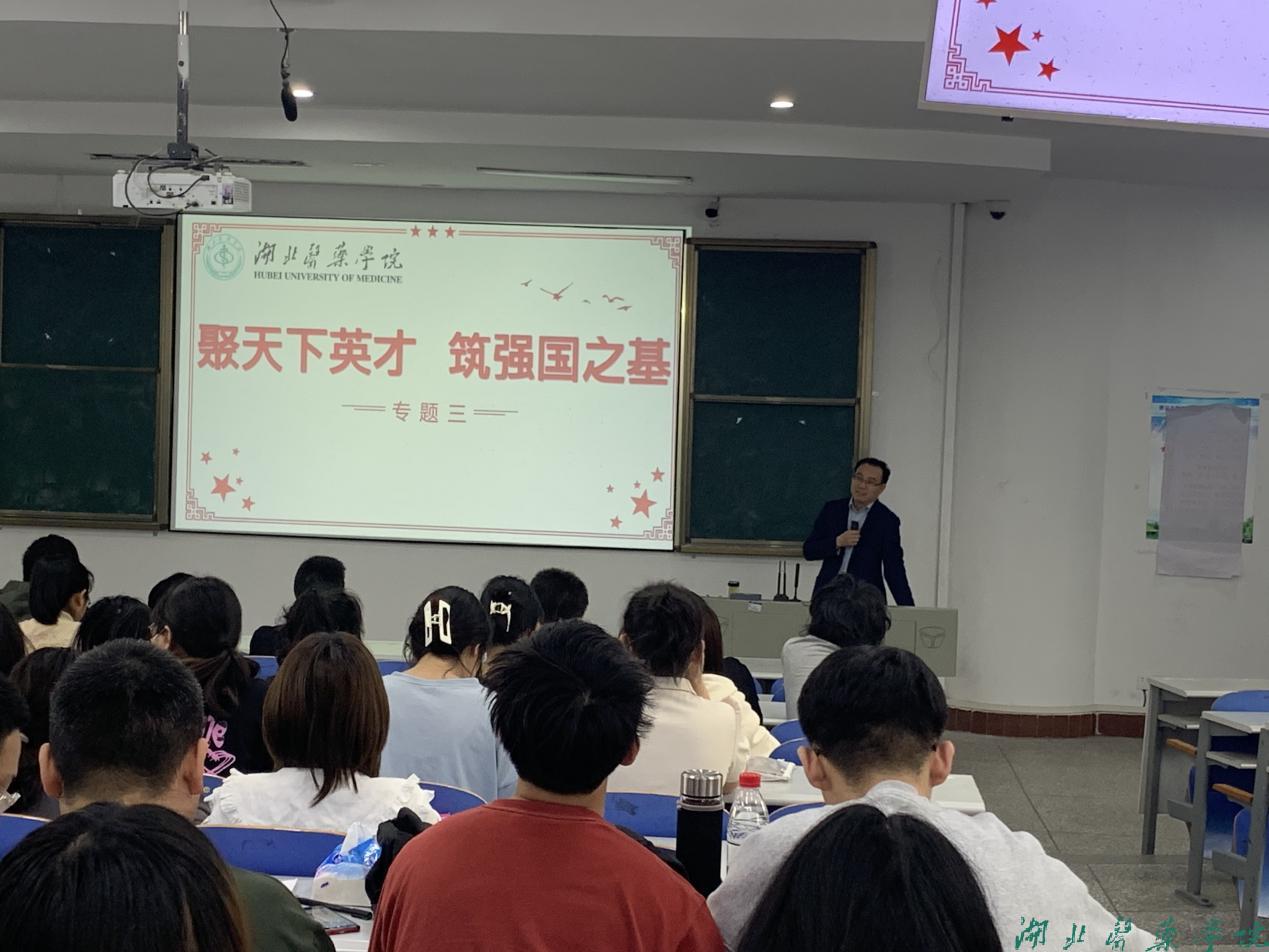 王云甫从过去、现在和未来国家对人才的需求展开话题,为同学们讲解了国家对于人才的渴求以及现阶段国家人才库建设所取得的巨大成就,将来国家对人才的培养将会是“四个面向”:面向世界科技前沿、面向经济主战场、面向国家重大需求、面向人民生命健康,湖北医药学院就承担了新时代新医科教育的重任。王云甫为同学们详细介绍了湖北医药学院历年来所取得的成就,带领同学们展望了学校的未来蓝图,我们将奋力“更名大学”“申博”,湖北医药学院可期可盼。王云甫勉励同学们,要志存高远也要脚踏实地,要勤奋学习也要善于思考,要提升专业素养也要提升综合素质。(编辑 鲍晓宇)