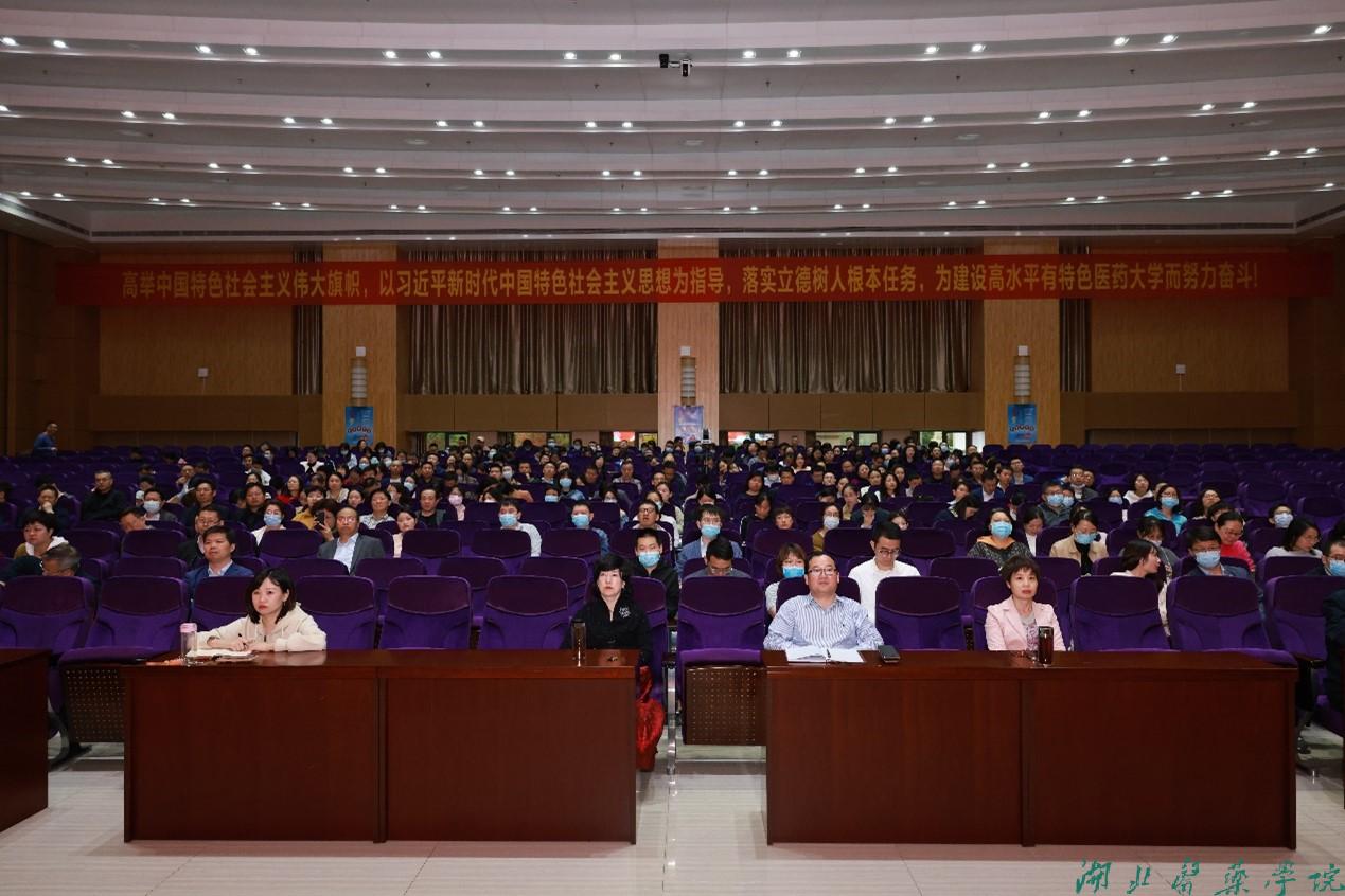 校党委常委、统战部部长谭艳,党委常委、组织部部长张海蛟及相关职能部门负责人在主会场参会,全体在家校领导、各职能部门负责人、二级学院领导班子成员及学科(专业)负责人、教研室主任及当天无教学任务的教师、学校审核评估专班成员等400余人在学校分会场线上参会。