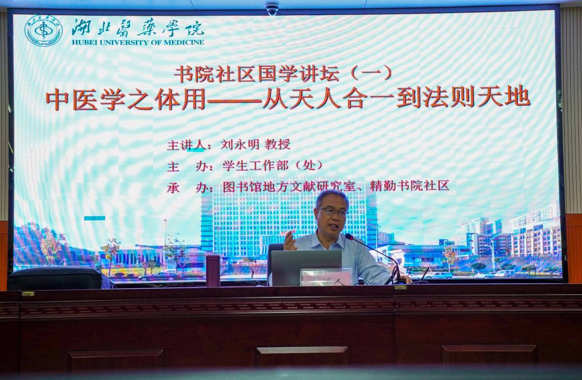 刘永明以《中医学之体用——从天人合一到法则天地》为题,讲解了如何认识中医学、中国传统文化中的天人合一思想、天人合一与中医学理论、医籍医典契合天人合一、天人合一对于中医学的意义等内容。讲座内容丰富、内涵深刻,给大家上了一堂生动的人文教育课,让大家受益匪浅。