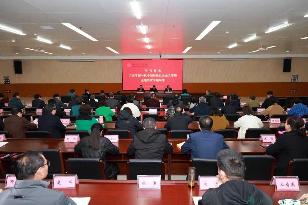 本网讯(文/付轶 鲍晓宇 图/鲍晓宇)2023年4月24日上午,湖北医药学院学习贯彻习近平新时代中国特色社会主义思想主题教育读书班在科教楼多功能厅开展第二场专题导学,校党委副书记、校长王云甫作廉政专题辅导报告,导学《中国共产党章程》和《论党的自我革命》。湖北省委第十四巡回指导组副组长、省政府国资委一级巡视员牟秉夔,指导组成员、武汉交通职业学院交通服务与管理学院学生管理办公室主任周全列席指导。全体校领导、学校编制副处级以上干部和党建组织员、教学督导员、学风督导员参会。会议由原党委书记涂汉军主持。