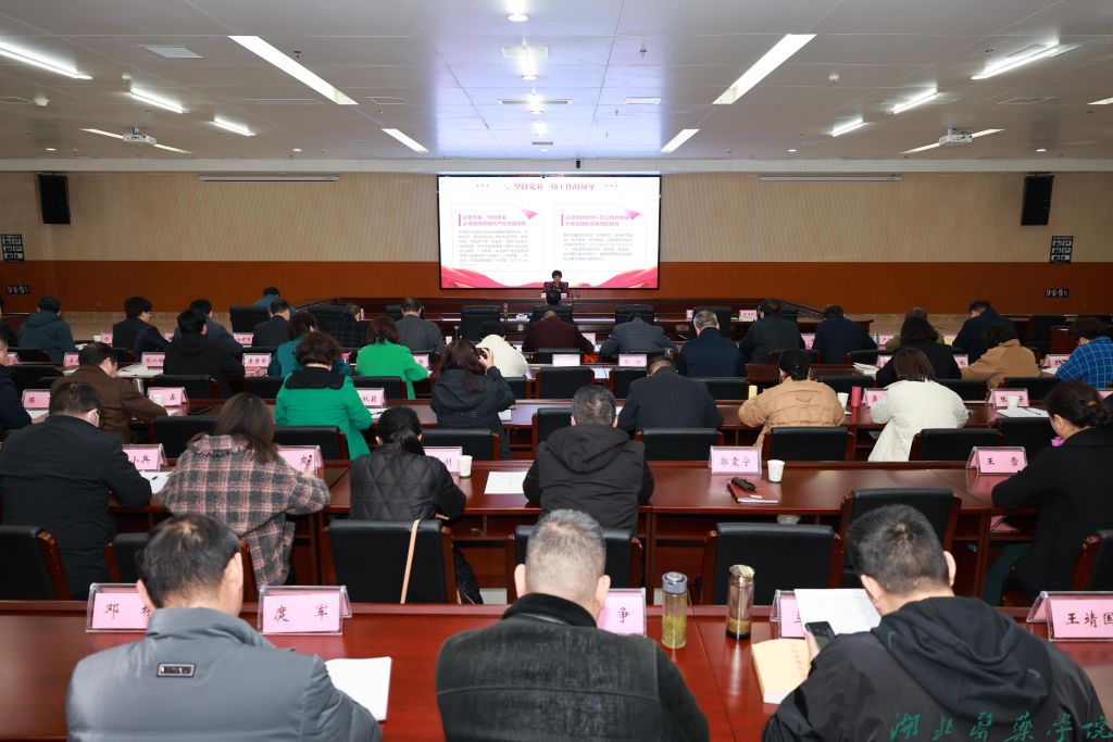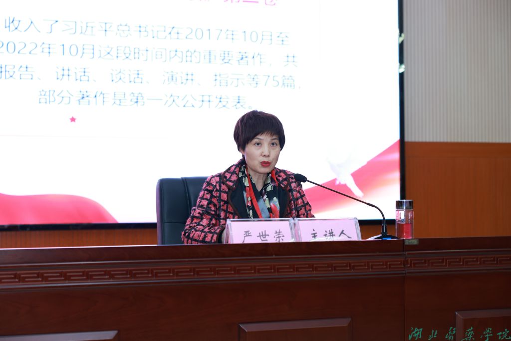 本网讯(图文 鲍晓宇)4月24日下午,湖北医药学院学习贯彻习近平新时代中国特色社会主义思想主题教育读书班开展第四场专题学习,学校编制副处级以上干部、党建组织员、教学督导员、学风督导员参会。本场专题导学由党委常委、副校长严世荣带领与会人员一起学习《习近平著作选读》第二卷内容。