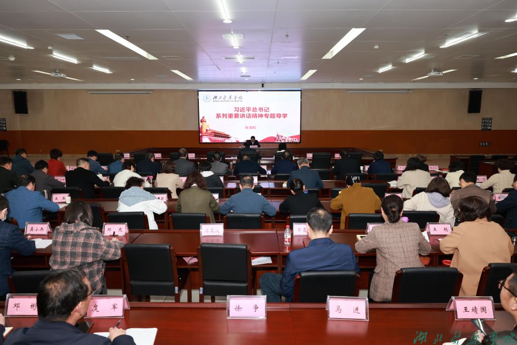 会上,张海蛟导学了习近平总书记关于湖北工作的重要讲话精神、习近平总书记关于高等教育工作重要讲话精神,以及《习近平新时代中国特色社会主义思想的世界观和方法论专题摘编》中,有关把握好新时代中国特色社会主义思想的世界观和方法论,坚持好、运用好贯穿其中的立场观点方法等内容。