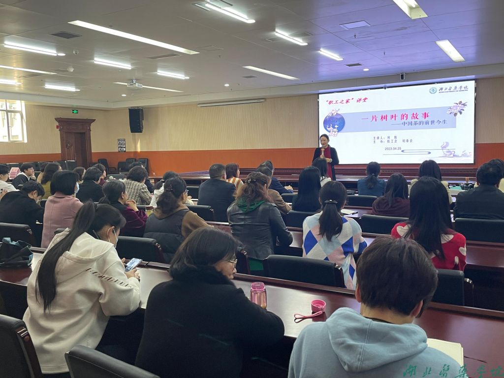 本网讯(通讯员 柯琴)4月25日下午,校工会、妇委会“职工之家”讲堂之《一片树叶的故事—中国茶的前世今生》茶艺文化知识讲座在科教楼多功能厅开讲,200余名教职工前来聆听讲座。讲座邀请了我校优秀校友、国家一级茶艺技师何俊主讲,校工会副主席、妇委会副主任魏燕主持。
