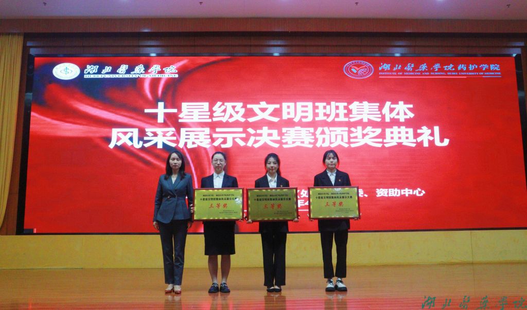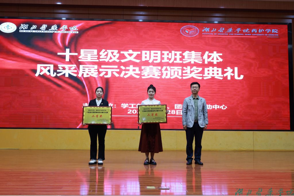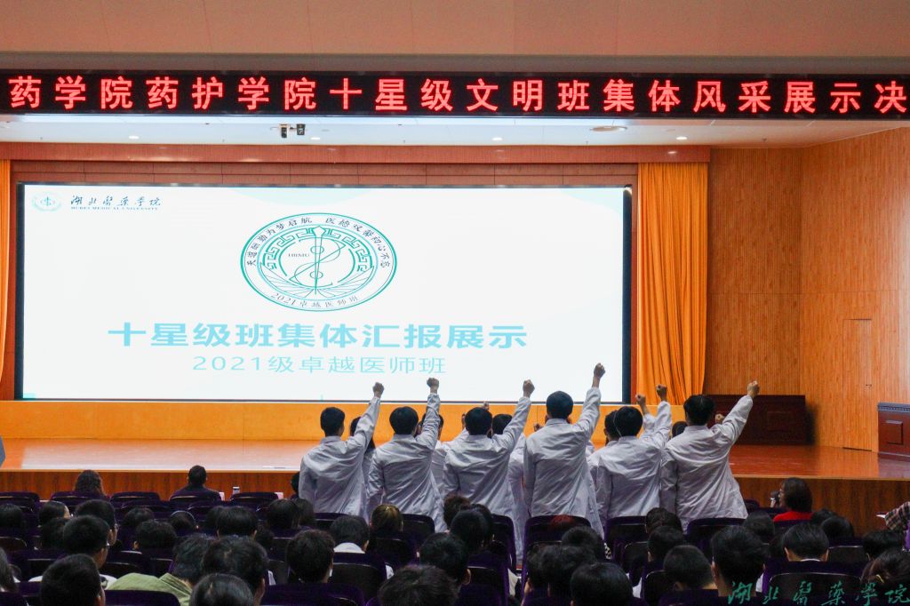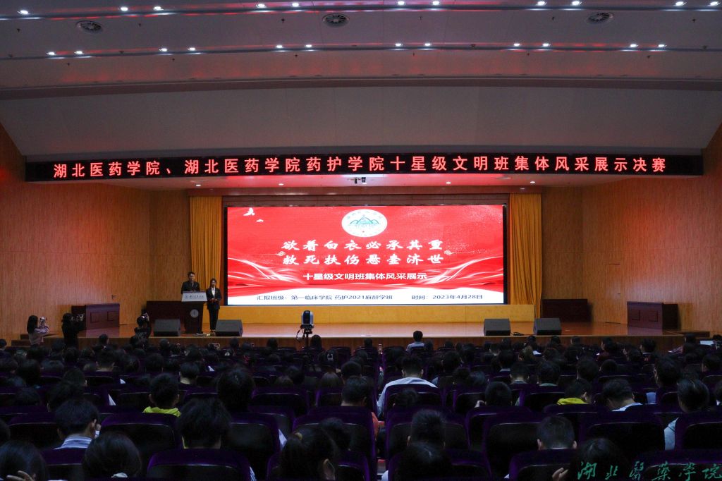 前期,经班级申报创建、学院评定审核、学工部复审公示,共评选十星级文明班集体16个,各类单项文明班集体40个。经过风采展示大赛初赛选拔,第一临床学院、护理学院、生物医学工程学院、第三临床学院的6个班级脱颖而出,站上决赛舞台。各班级纷纷化身“卷王”,结合PPT、视频、现场表演等形式进行班级风采展示,讲述属于新时代湖医药青年的奋进故事。他们或慷慨陈辞,直抒践行“刻苦钻研明医德,艰苦奋斗担大任”誓言的青春激情;或娓娓道来,婉言诉说班级同学相亲相爱的真挚情谊;或展示文艺,挥洒青春活力,放飞青春梦想,为班级代言打call,不时赢得在场师生的阵阵掌声。