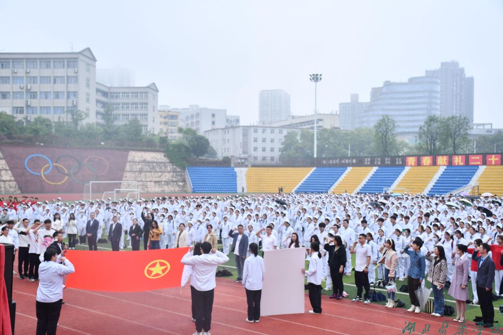 本网讯(文/吴敏 图/吴晓悦 王柳 古炫栢)5月4日,在五四运动104周年纪念日当天,第112个“5.12”国际护士节即将来临之际,我校在田径运动场举行“弘扬五四爱国精神,践行南丁格尔使命”主题升旗仪式。党委副书记、校长王云甫,党委常委、组织部部长张海蛟,学工处、团委、护理学院全体教职工以及各二级学院的分团委书记、护理学院全体2022级新生参加。此次活动由校团委主办,护理学院承办,护理学院分党委书记王桂琴主持。