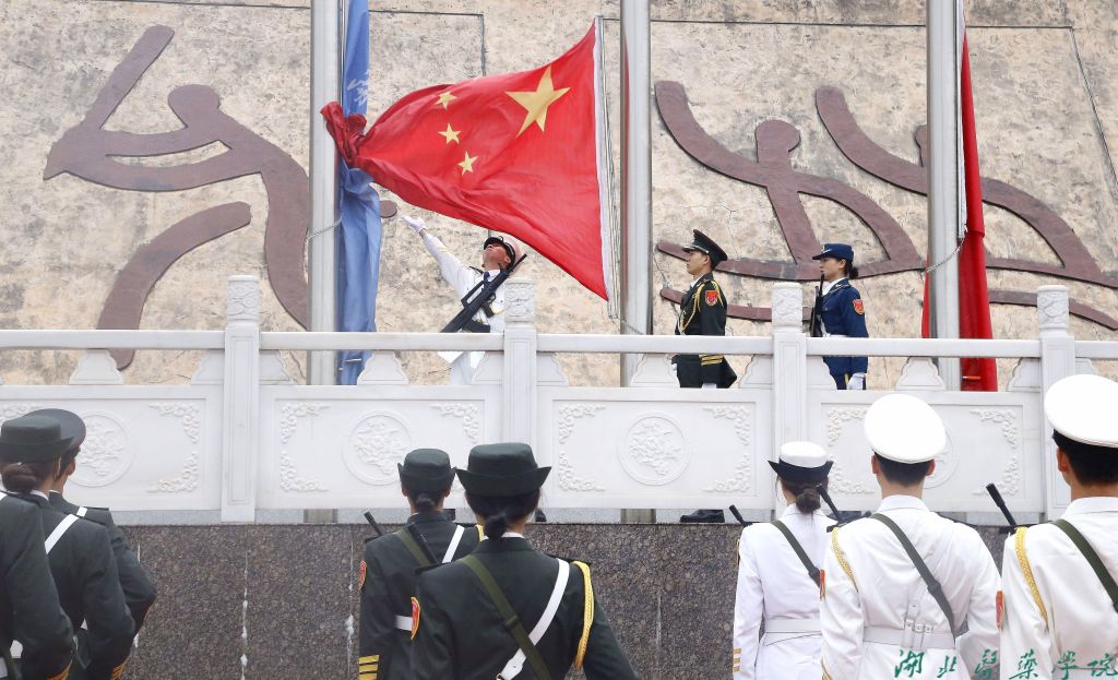 早上7点整,鲜艳的五星红旗在庄严的国歌声中冉冉升起,全体师生向国旗行注目礼。在新团员入团仪式上,张海蛟为新团员代表颁发团员证、团徽,校团委书记陈璞带领全体人员重温入团誓词。护理学院学生带来的音诗画朗诵《书写青春华章》,表达了青年学生做立大志明大德成大才担大任的时代新人的决心。