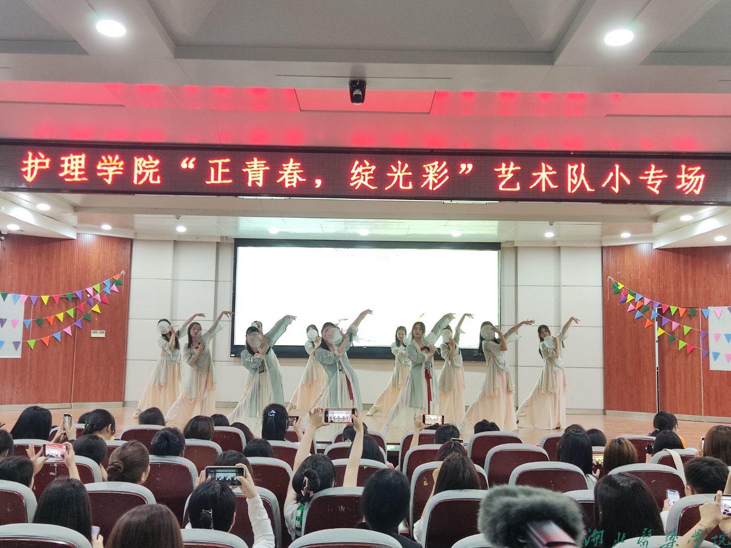 本网讯(通讯员 沈锐 胡美玲)为了加强艺术队各团体之间的合作能力,提高艺术队成员的自我表现力,展示大学生活的多姿多彩,倡导健康、积极的校园文化,2023年5月13日晚,由护理学院学生会主办的“正青春,绽光彩”艺术队小专场活动在八号教学楼多功能厅成功举办。