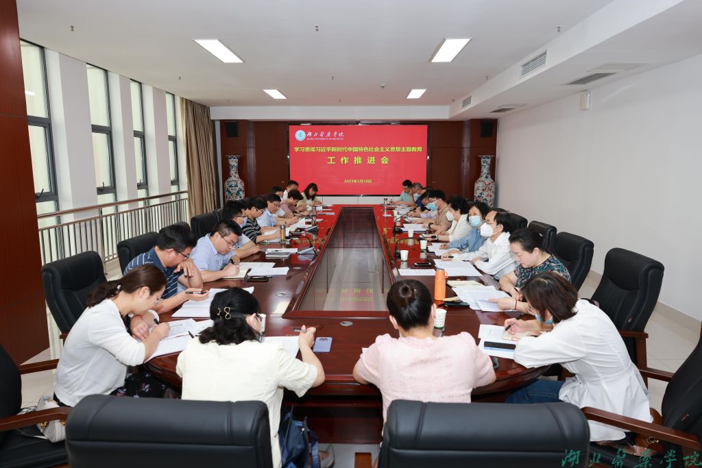 本网讯(文/汤俊波 图/鲍晓宇)为深化落实省委主题教育领导小组要求和第十四巡回指导组指导意见,推动主题教育各项工作深入开展,5月18日上午,学校在科教楼1708会议室召开主题教育工作推进会,主题教育领导小组办公室组织组、综合组、宣传组、督导组全体成员,校领导调研课题联络员,各分党委书记参加会议。党委常委、组织部部长张海蛟主持会议。