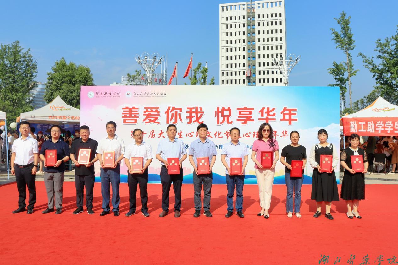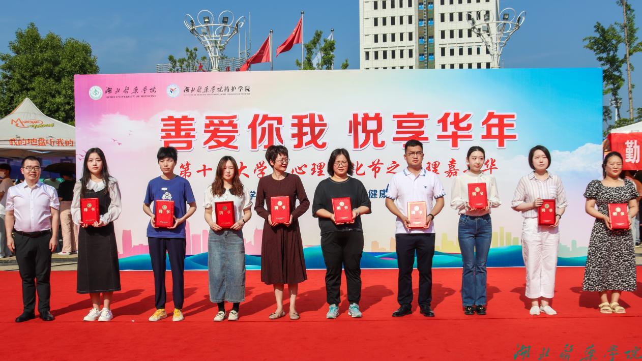 活动现场开始前,大学生艺术团和部分学生社团为现场师生带来了精彩的演出。张海蛟为第十届大学生心理文化节优秀组织单位第五临床学院、护理学院、基础医学院、第三临床学院和人文社会科学学院颁奖,学工部部长、校团委书记陈璞、学工部副部长龚小兵分别为各学院心理健康辅导站站长、心理专干颁发聘书。