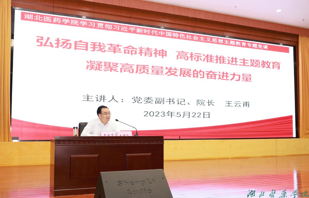 在深入学习理论和扎实开展调研基础上,王云甫围绕党的自我革命鲜明主题,从深刻把握习近平总书记关于党的自我革命战略思想的科学内涵、重大意义,深刻把握通过党内集中教育加强党的自我革命的历史逻辑、理论逻辑、实践逻辑,发扬自我革命精神、以高质量主题教育推动学校高质量发展等三个方面讲授党课。