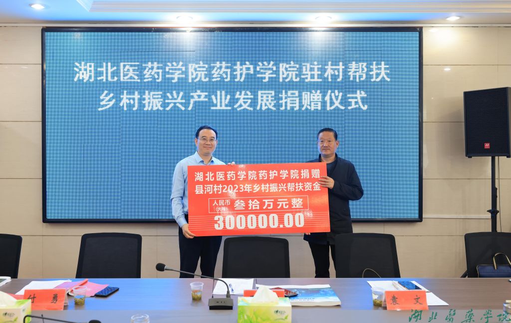 在县河镇会议室,湖北医药学院对口帮扶竹溪县县河镇县河村乡村振兴工作现场会召开。县河村村支部书记明安华汇报2023年村上开展的工作及请求帮扶事项;驻村第一书记付勇汇报2023年驻村帮扶工作开展情况;县河镇党委书记罗猛介绍县河镇2023年乡村振兴工作开展情况。学校汉江生态经济带乡村振兴研究中心袁艺老师汇报县河村乡村振兴村庄规划编制工作。随后,王云甫代表学校党政向县河镇政府捐赠2023年产业振兴发展帮扶资金10万元,向县河镇县河村捐赠2023年乡村振兴帮扶资金30万元。