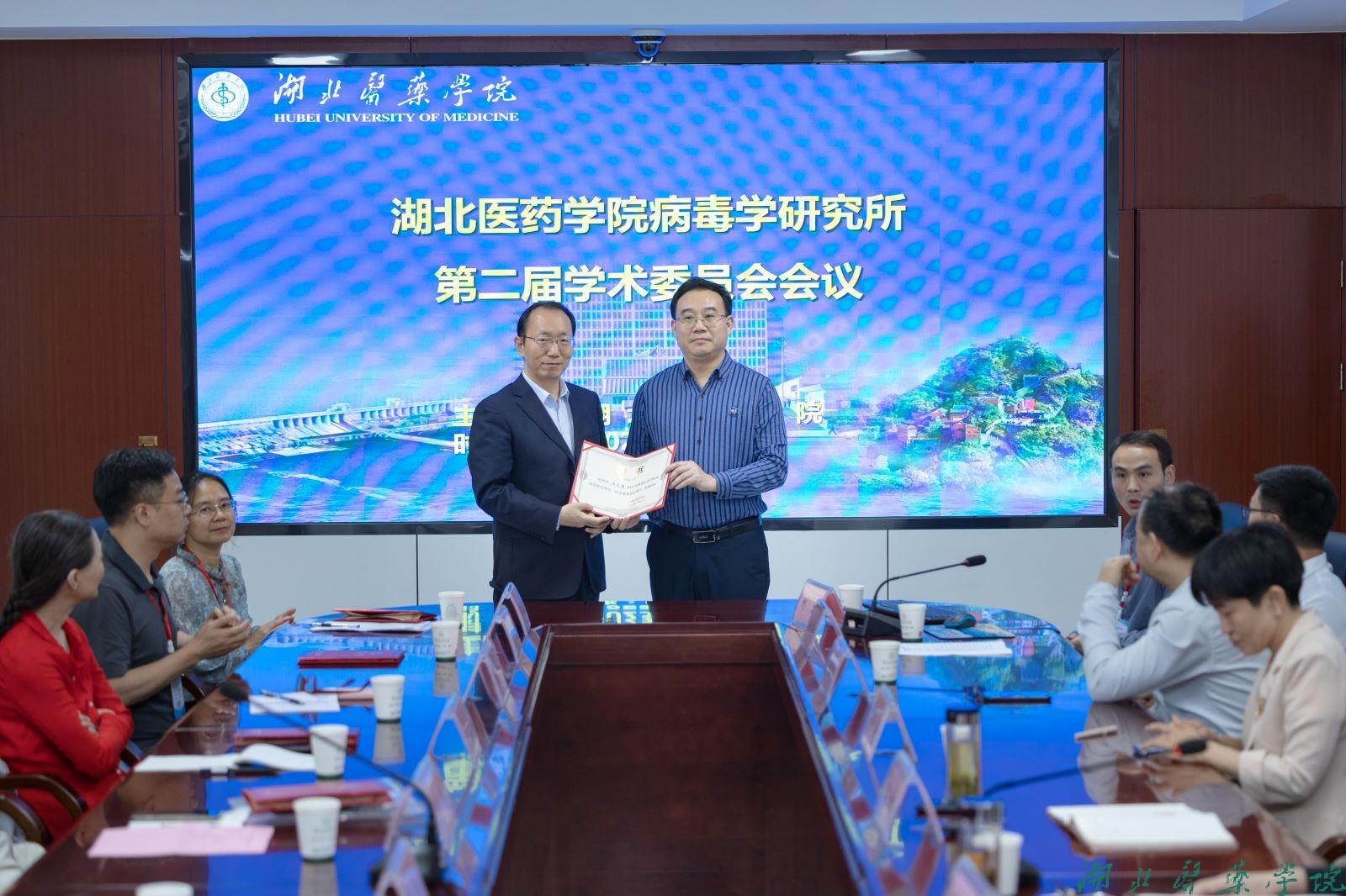 当日下午,党委常委、副校长严世荣教授主持召开病毒学研究所第二届学术委员会会议。党委副书记、校长王云甫为学术委员会委员颁发聘书,聘请蓝柯教授为湖北医药学院病毒学研究所第二届学术委员会主任。中山大学李义平教授、湖北医药学院直属附属太和医院孟吉忠吉教授等专家学者做学术报告,与各学术委员会委员交流探讨。