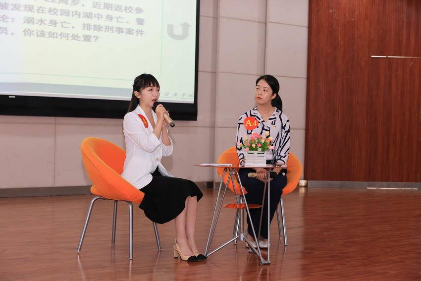决赛阶段分为案例研讨、谈心谈话两个环节。案例研讨环节中,参赛选手两人一组,以“我提问,你回答”的方式,就辅导员日常工作中涉及的理想信念教育和价值引领、学风建设、危机事件应对与处理、学业指导、就业指导等工作内容,共同辨析原因、探讨对策、总结规律。同组参赛的两个选手既是对手,又要联手,既要出招,也要接招。在交流研讨中,选手们思维敏捷、思路清晰、导向正确、妙语连珠,充分展示了扎实的职业素养。
