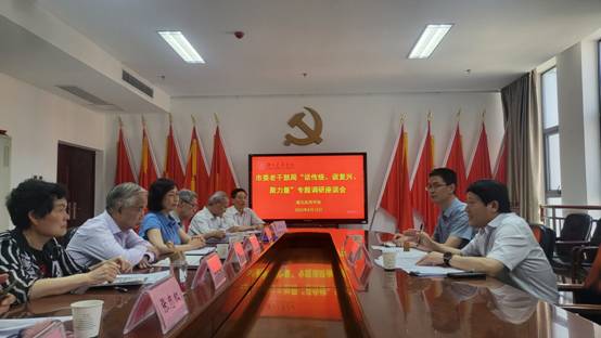 本网讯(通讯员 王雨)6月13日,市委老干部局二级调研员李耀昌、市委老干部局办公室副主任高杨来我校开展“话传统、谈复兴、聚力量”专题调研,我校离退休分党委书记周艳、副书记张忠红、退休老干部曾孔生、谭志金、廖广照等同志参加座谈。