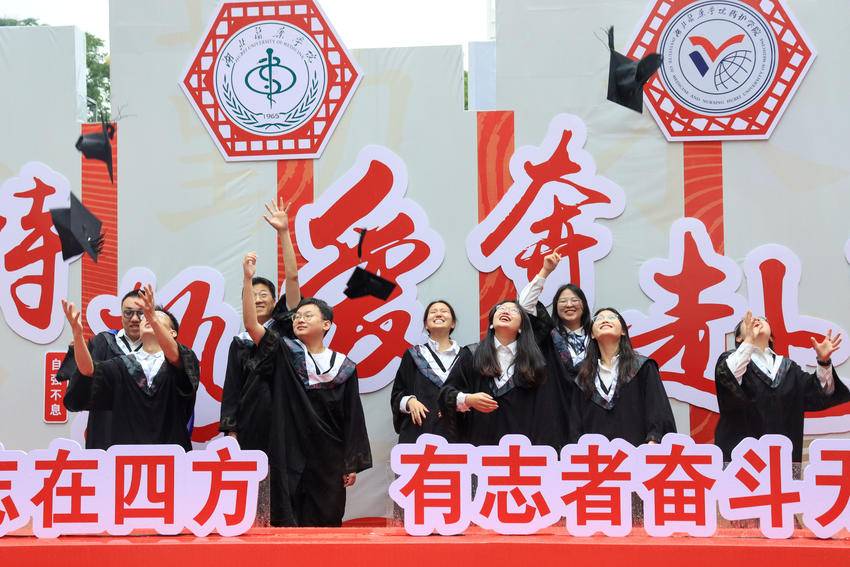 湖北医药学院党委副书记、校长王云甫寄语同学们“三首歌”,一是保持“自找苦吃、向难而进”的韧劲,用“时时在线”的自律之歌修身洁行。走出校园,做自己的“园丁”,在生活的花园里挖呀挖呀挖,种吃苦的种子开幸福的花。二是保持“敢闯敢创、锐意进取”的钻劲,用“处处争先”的奋斗之歌躬体力行。希望同学们怀着“不破楼兰终不还”的勇气去试、去闯,将目光投向技术攻关的无人区,潜心钻研卡脖子技术难题,抢占医学智能、前沿医疗技术、生物基因组等方向的制高点,以勇锐盖过怯弱,用创新压倒苟安。三是保持“勇于担当、微光成炬”的热劲,用“事事上心”的奉献之歌奋勇前行。“健康所系,性命相托”这份人民的信任呼唤着医学人的责任担当,希望同学们能坚守学医本心,厚植家国天下的情怀、泽被苍生的理想,以救死扶伤为己任,在为民奉献上始终心潮澎湃。