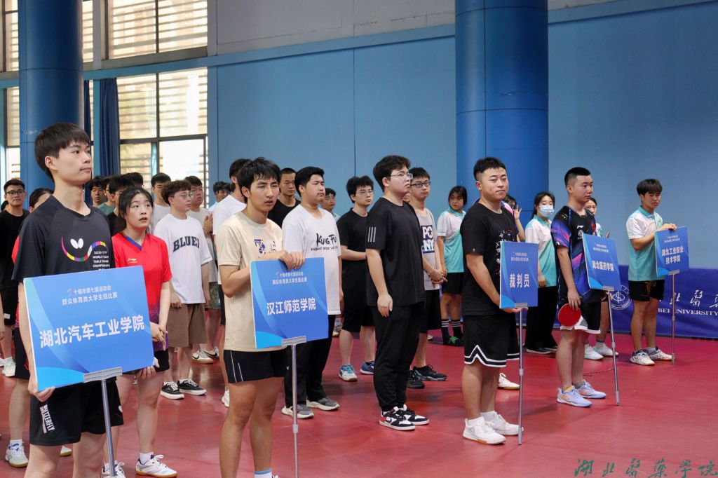 本网讯(文/朱红军 图/学通社记者汪晓涵 杨欣妮)6月24日-25日,十堰市第七届运动会群众体育类大学生组乒乓球比赛在我校同兴楼乒乓馆举行,来自湖北医药学院、湖北汽车工业学院、汉江师范学院、湖北工业职业技术学院四所高校的近百名学生参加比赛。党委常委、副校长严世荣,十堰市体育中心党支部书记李卫,人文社会科学学院副院长陈全新,以及参赛高校体育部主任出席本次开幕式,开幕式由体育课部主任朱红军主持。