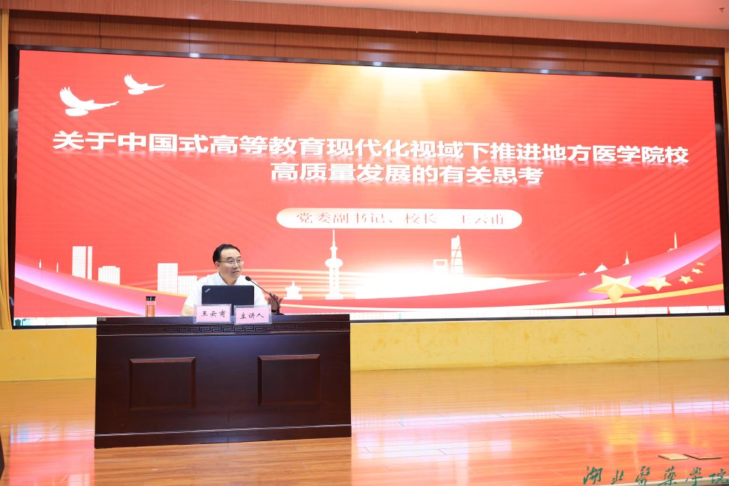 王云甫指出,党的二十大报告部署强化现代化建设的人才支撑,坚持教育优先发展、科技自强自立、人才引领驱动,加快建设教育强国、科技强国、人才强国。王云甫强调,要深入学习习近平总书记关于中国式高等教育现代化的重要论述。中国式高等教育现代化,必须始终坚持党对教育事业的全面领导,必须牢牢抓住培养什么人、怎样培养人、为谁培养人的教育根本问题,必须坚持把高质量发展作为生命线,必须以改革创新为动力。要准确把握中国式高等教育现代化赋予高校高质量发展的时代要义。实现高校高质量发展,必须坚持守正创新,必须把握时代主题,必须发挥倍增效应。王云甫要求,要准确把握中国式高等教育现代化背景下我校高质量发展面临的诸多挑战,践行高校在中国式现代化中的责任与担当,遵循医学教育规律,把提高教育教学质量作为生命线,坚持正确人才培养定位,持续推进学校与附属医院融合发展,坚持以高质量党建引领高质量发展。(编辑 陈建龙)