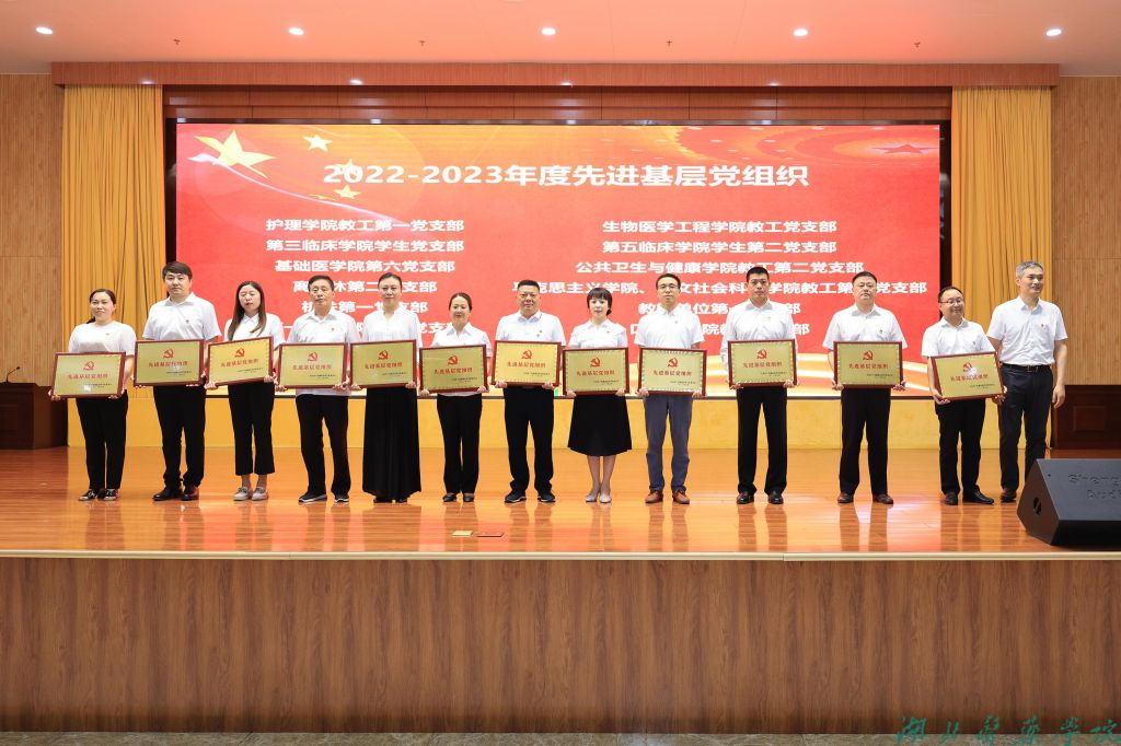 会上,党委常委、副校长、直属附属太和医院党委书记罗杰为12个获得“先进基层党组织”称号的党支部负责同志颁发奖牌;党委常委、副校长严世荣为7个获得“先进基层党组织”称号的分党委负责同志颁发奖牌;党委常委、副校长李云霞为“光荣在党50年”纪念章获得者颁发纪念章,学生志愿者为老同志们献上鲜花;原党委书记涂汉军为第二届“最美湖医药人”颁发奖章、荣誉证书,学生志愿者献上鲜花。