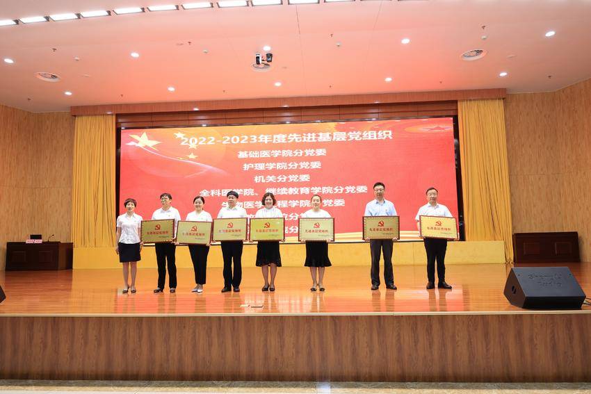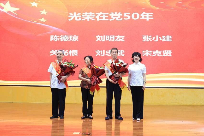 会上,党委常委、副校长、直属附属太和医院党委书记罗杰为12个获得“先进基层党组织”称号的党支部负责同志颁发奖牌;党委常委、副校长严世荣为7个获得“先进基层党组织”称号的分党委负责同志颁发奖牌;党委常委、副校长李云霞为“光荣在党50年”纪念章获得者颁发纪念章,学生志愿者为老同志们献上鲜花;原党委书记涂汉军为第二届“最美湖医药人”颁发奖章、荣誉证书,学生志愿者献上鲜花。