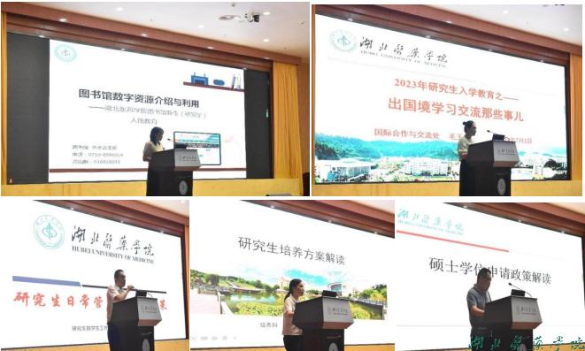 图书馆参考咨询部董丽老师以《图书馆数字资源介绍与利用》介绍了统一检索平台的使用方法,阐述了中文资源、外文资源、多媒体资源、文献传递的搜索渠道和方法。国际合作与交流处毛玉竹老师以《出国境学习交流那些事儿》为题讲述我校研究生出国交流访学、深造留学的主要项目申请流程。研究生院培养办刘琴老师解读研究生培养方案各环节关键制度;学位办程钧老师解读了学位论文政策;学生工作办公室李明老师讲解了研究生日常管理及资助政策。