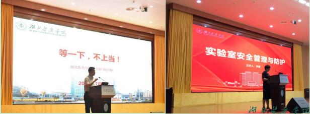 生物医药研究院院长李蓓以《实验室安全管理与防护》为题,分析实验室安全事故案例、原因,强调科学研究工作的第一底线是“安全”,研究生进入实验室第一课就是“实验室安全”,要求同学们要多学、多听、多看、多问,养成好的安全实验习惯。保卫处处长师贞明以《等一下,不上当!》为题,分析电信网络诈骗案件发案形势,总结电信诈骗案件发案特点,引导研究生新生做防范电信网络诈骗的表率。