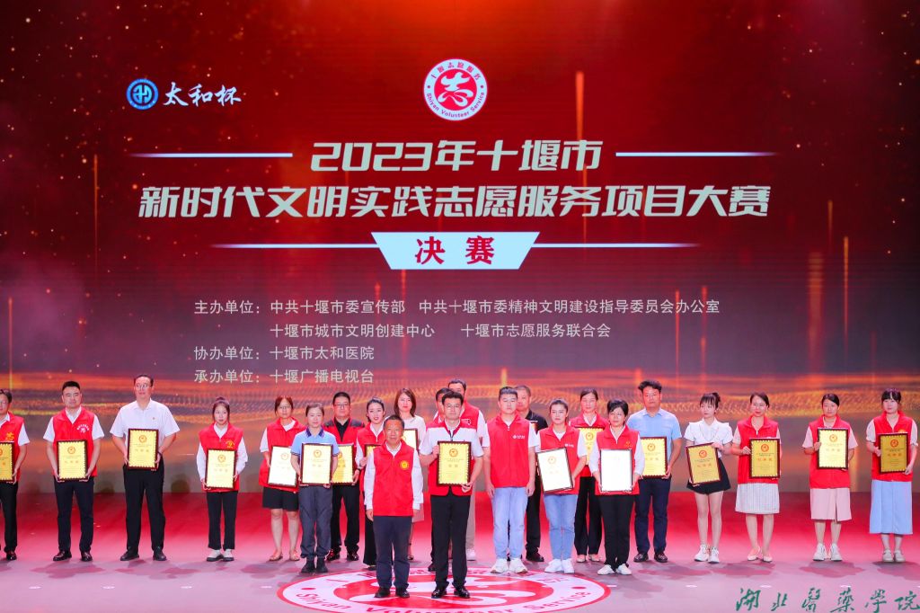 本网讯(通讯员 郭俊)7月20日,2023年十堰市新时代文明实践志愿服务项目大赛决赛在十堰传媒中心1号演播大厅举行。我校基础医学院“巨鲸落·万物生”团队荣获大赛金奖,第一临床学院彩虹“雁行计划”团队、思政4S青年讲师团团队获优秀奖,湖北医药学院校团委荣获大赛“优秀组织单位”。