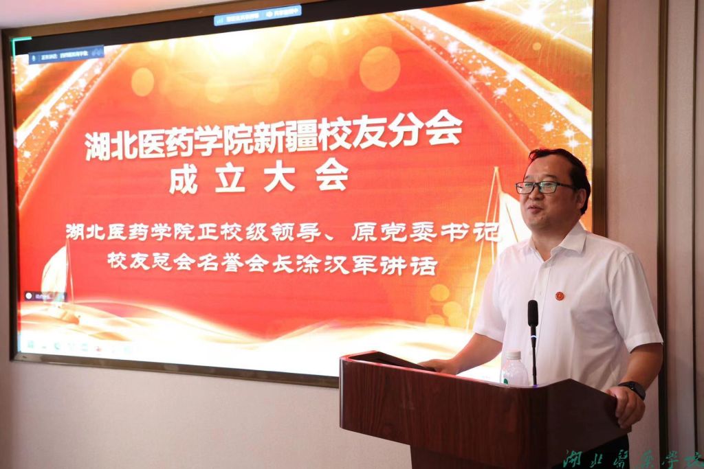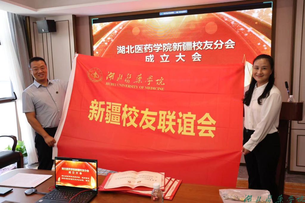 本网讯(通讯员 肖杉)8月19日上午,湖北医药学院新疆校友分会成立大会在新疆可克达拉市举行。学校正校级领导、原党委书记、校友总会名誉会长涂汉军,校党委常委、统战部长谭艳,校友总会秘书长陈磊,招生就业工作处处长徐秀娟出席会议,与新疆近100名校友代表通过线上线下方式共同见证这一美好时刻。