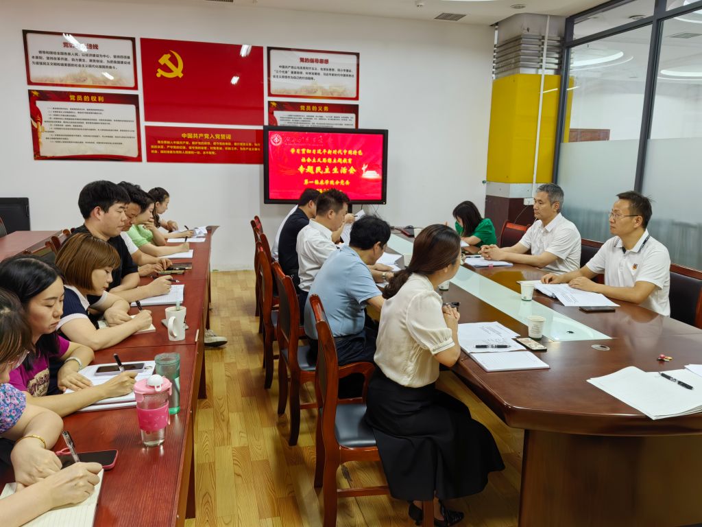 本网讯(通讯员 洪敏)9月6日下午,第一临床学院分党委领导班子学习贯彻习近平新时代中国特色社会主义思想主题教育专题民主生活会在学院党员活动室召开,党委常委、副校长、直属附属太和医院党委书记罗杰,校党委宣传部部长陈建龙、校纪委正科级纪检监察干部付轶到会指导,党支部书记、科室负责同志参加。会议由第一临床学院分党委书记邵义光主持。