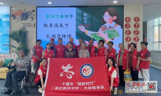 秦楚网-十堰头条讯通讯员李文芳报道:为迎接全国第39个教师节,湖北医药学院银龄志愿服务队的离退休老师们走进十堰市人民医院医养中心开展志愿服务活动。湖北医药学院第三临床学院副院长、附属人民医院医养中心主任李莉及医养中心工作人员对老教师们的到来表示热烈的欢迎。