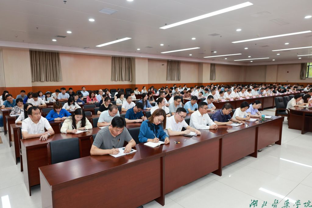 本网讯(文/汤俊波 赵曼 图/鲍晓宇)9月19日下午,湖北医药学院在科教楼多功能厅召开学习贯彻习近平新时代中国特色社会主义思想主题教育总结会议,全体在家校领导,学校编制科级以上干部,党建组织员、教学督导员、学风督导员,党支部书记参会。会议由党委常委、副校长李云霞主持。
