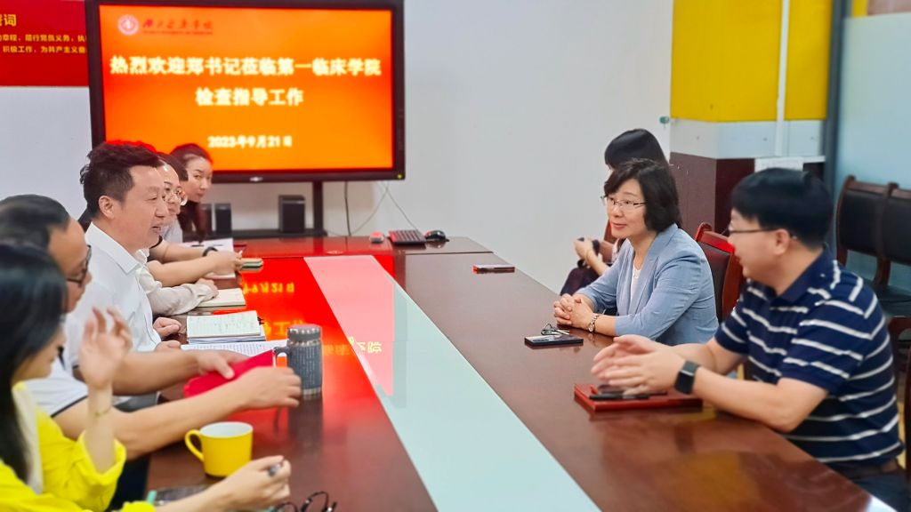 本网讯(通讯员 洪敏)9月21日上午,校党委书记郑丹凤深入第一临床学院调研指导工作,党政办王有涛主任等相关人员陪同调研。第一临床学院分党委领导班子成员、科级干部、支部书记参加。