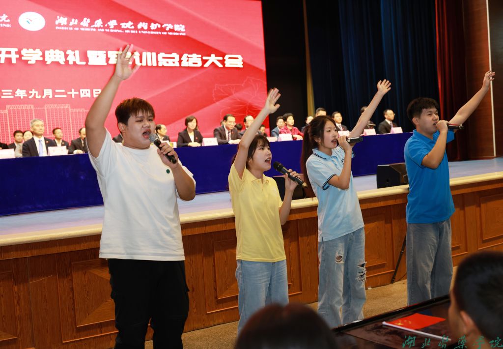 开学典礼在雄壮的国歌和悠扬的校歌中拉开帷幕。