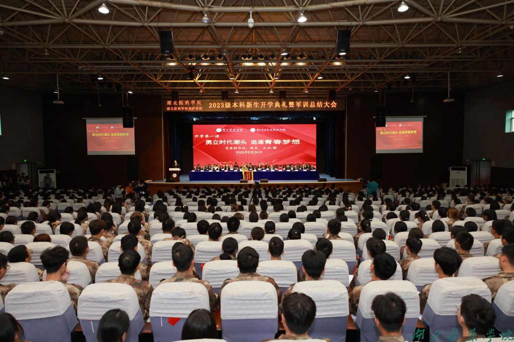 本网讯(文/学通社记者蒋寿欢 图/鲍晓宇)9月24日上午,湖北医药学院、湖北医药学院药护学院2023级本科新生开学典礼暨军训总结大会在学子会馆三楼举行,科教楼学术报告厅、五号教学楼教室同步直播。全体校领导、各职能部门负责人、各学院主要负责人出席活动,新生班级辅导员和全体新生参加活动。大会由党委常委、组织部部长张海蛟主持。