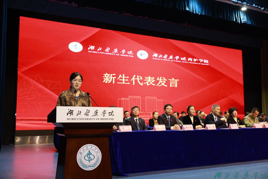 少年意气风发,梦在前方,路在脚下。新生代表邱曼淇,老生代表任安琦,教师代表唐俊明依次发言,期待所有的大学新生在新的起点,奋进逐梦,成为一名优秀的湖医药人。