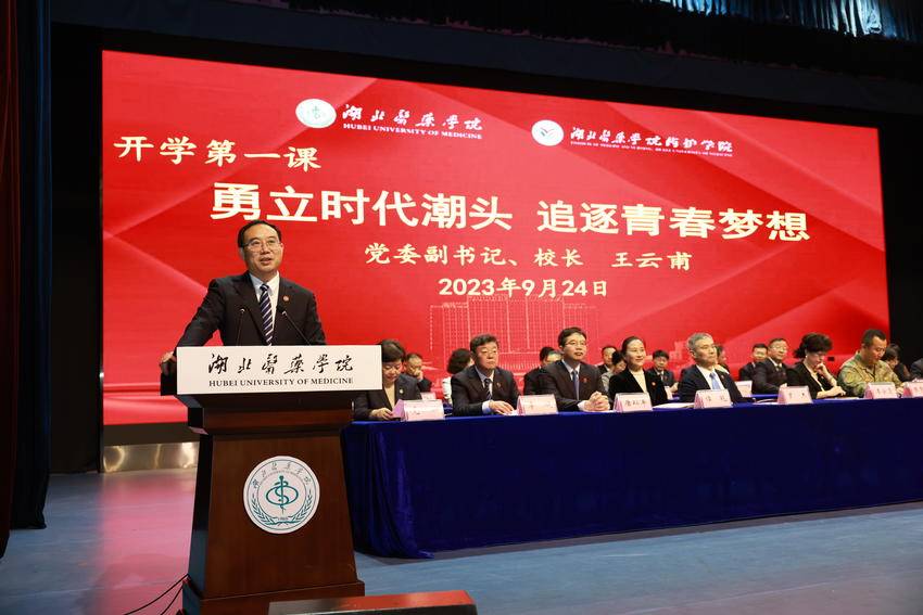 “新时代的你们生逢盛世,施展才干的舞台无比广阔,实现梦想的前景无比光明。”开学典礼上,党委副书记、校长王云甫为新生讲授开学第一课。他以《勇立时代潮头,追逐青春梦想》为题,为同学们给出了“如何应对转变,快速适应大学生活”的通关秘籍,他鼓励同学们要立大志,立长志,早立志,做有志青年;要立大德,明大德,修美德,做有德之人;要接地气,养才气,展锐气,做有为青年。“湖医药将是你们这段人生路上最温馨的家园,最坚实的臂膀,会一直在你们身边保驾护航!”谆谆话语、殷殷嘱托,鼓舞人心、催人奋进。
