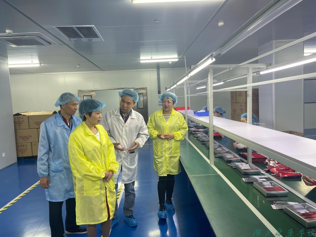 在公司工作人员的带领下,严世荣一行参观了该公司产品展示间、生产线、高标无菌车间、员工宿舍、仓储等设施。