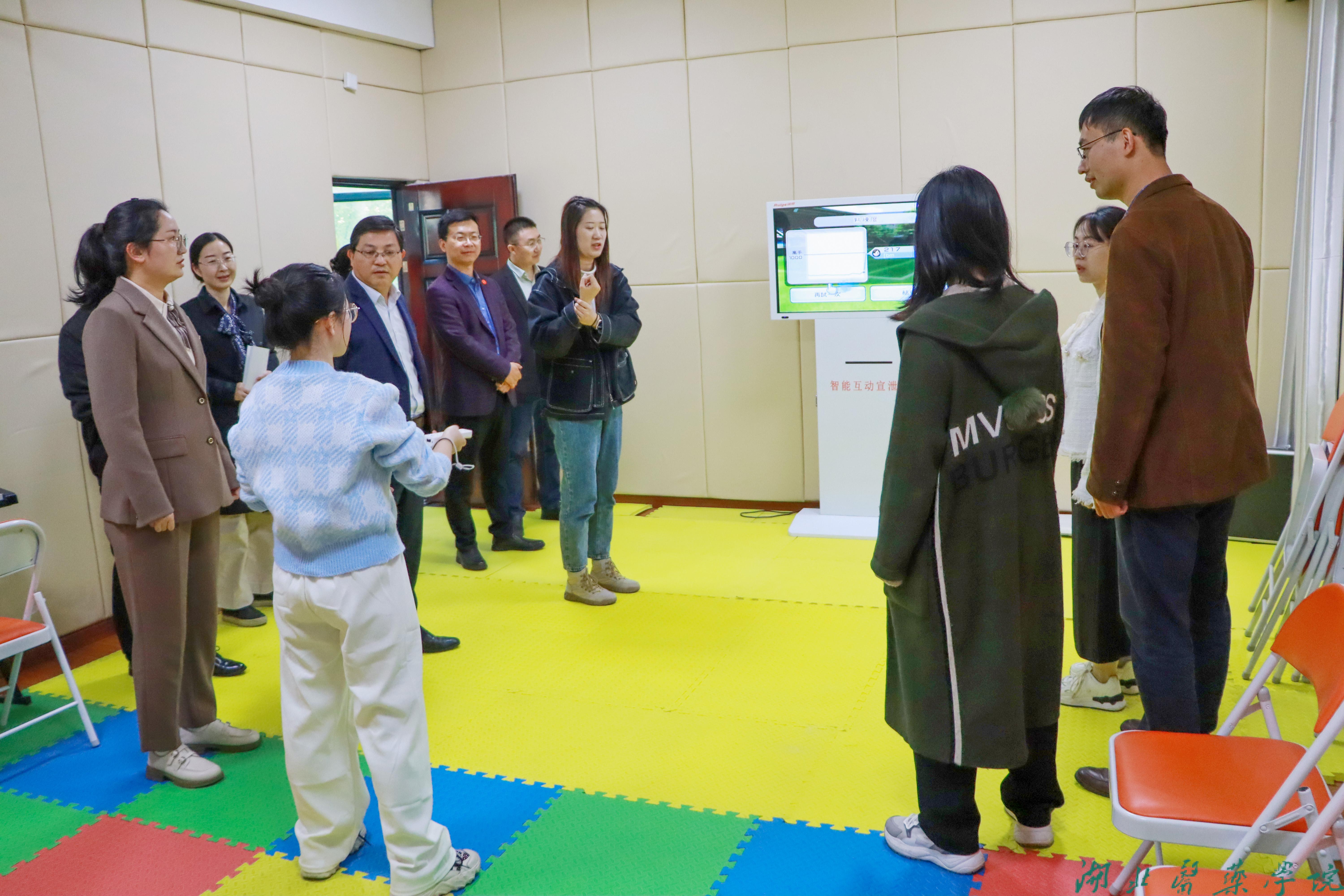 专家组实地走访体验大学生心理健康教育中心,查阅心理健康教育材料,与心理健康专职教师进行座谈,对学校心理健康教育工作给予肯定评价。