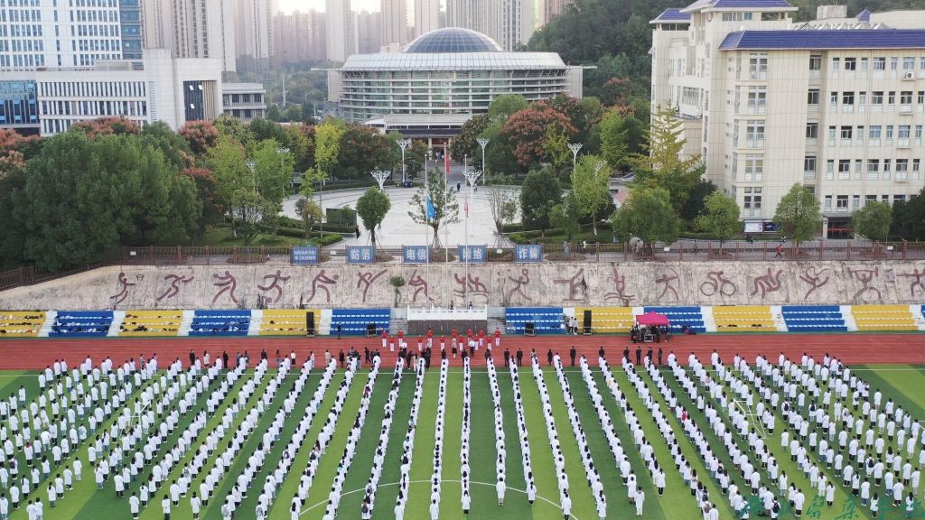 本网讯(文/黄悦 陈静 图/鲍晓宇 航拍图/学通社记者 钟诺雨)10月16日上午,学校举行“青春逢盛世·青年当有为”主题升旗仪式,校领导郑丹凤、谭艳、张海蛟,以及学工处、团委、全科医学院、第五临床学院近千名师生参加活动。